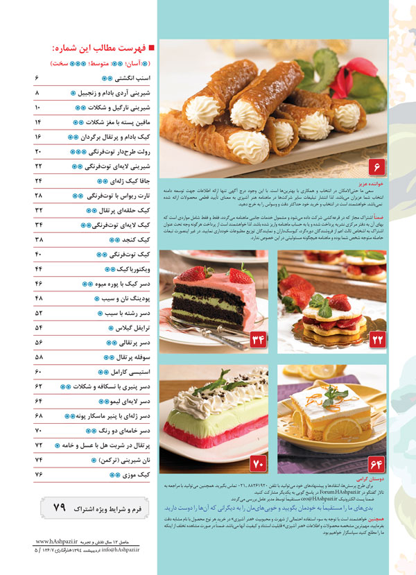 فهرست مجله هنر قنادی 126-127 با 28 عنوان دستور تهیه